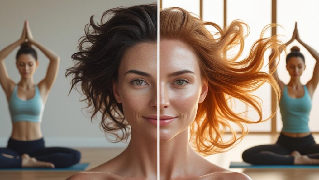 Yoga isn’t just about flexibility or fitness; it’s a holistic science that balances your mind, body, and soul. For centuries, it has been used to improve blood circulation, enhance oxygen flow, release stress, and promote natural detoxification — all of which directly affect the way your skin and hair look.