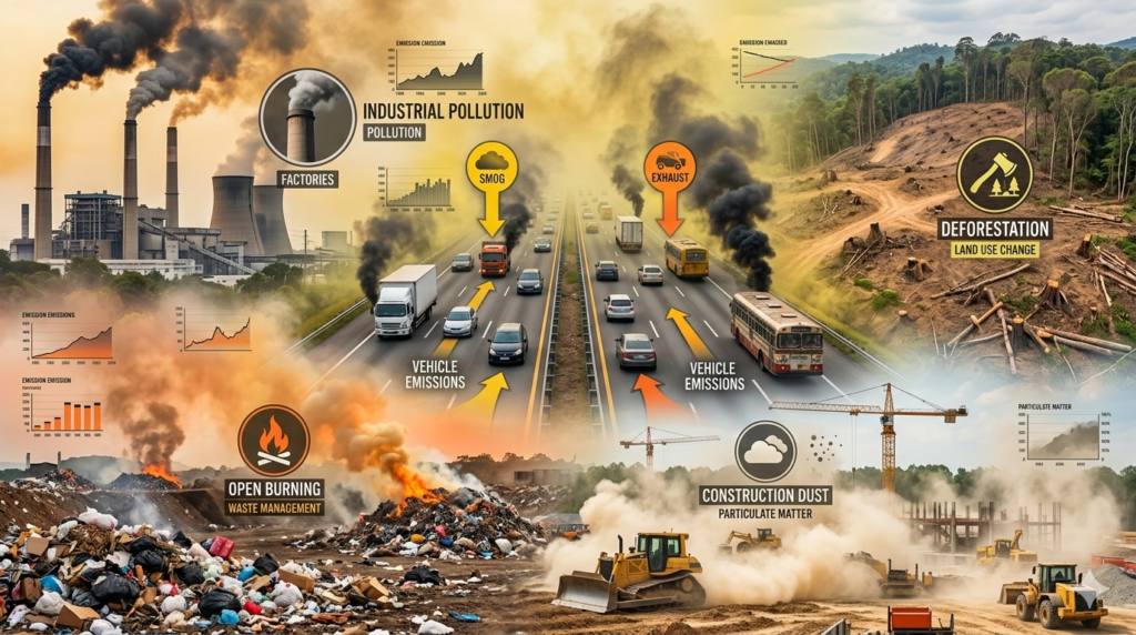 Another major cause is reliance on fossil fuels. Many cities still depend on coal and diesel, which release harmful pollutants. Industrial activities, especially in developing countries, often lack proper emission controls. Add to that the burning of waste and agricultural practices, and the situation becomes even more complex.
